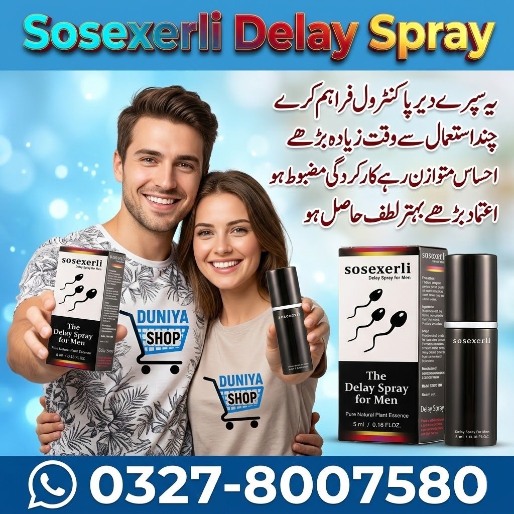 Sosexerli Delay Spray aik aala miyaar ka sexual wellness product hai jo khusoosan un mardon ke liye design kiya gaya hai jo premature ejaculation (jald farigh hona) se nijat chahte hain. Yeh spray aik jadeed aur skin-friendly formula par mushtamil hai jo climax ke waqt ko barhane mein madad deta hai. Original Sosexerli Delay Spray in Pakistan ab un mardon ki pehli pasand ban chuka hai jo sasti local products ke bajaye aik authentic aur branded product par bharosa karte hain taake results aur safety dono hasil hon.