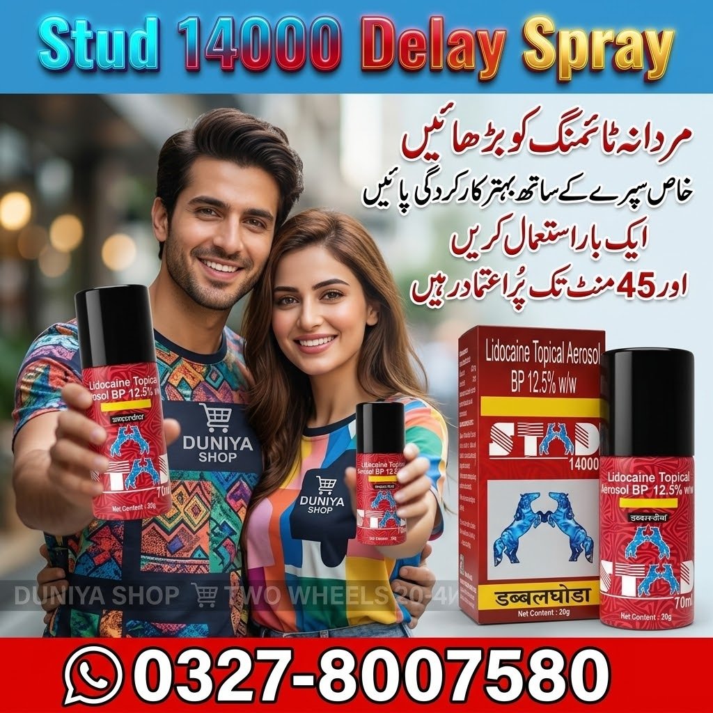 Stud 14000 Delay Spray mardana timing aur stamina barhane ka premium hal hai. Yeh spray aapko climax par behtar control aur confidence deta hai. Original Stud 14000 Delay Spray price in Pakistan mein behtareen deals ke liye abhi order karein. For order now contact on this number: 0327-8007580